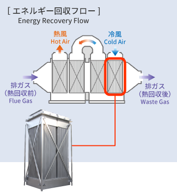 300℃から1000℃まで、幅広い温度域の排ガスの熱回収に対応し、CO2の削減、原単位の低減に大きく貢献します。