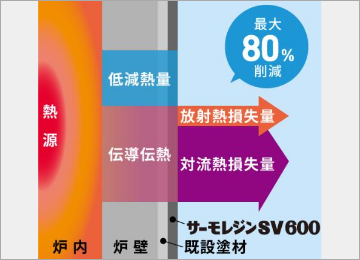 炉体からの輻射熱(放射熱)を大きく低減できる新しいタイプの遮熱塗料です。
